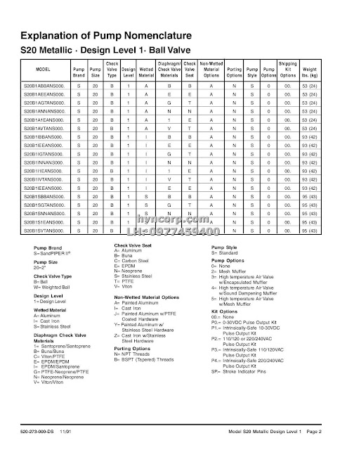 Catalogue bơm màng Sandpiper S30 Non-Metallic: